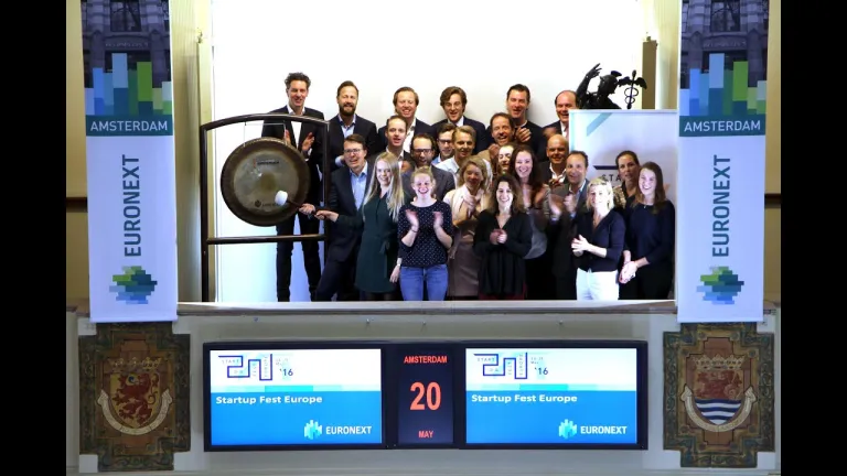 Zijne Koninklijke Hoogheid prins Constantijn van Oranje, voorzitter, luidt de beursgong voorafgaand aan Startup Fest Europe. Startup Fest Europe is een internationaal festival met events dat startups helpt om sneller te groeien door het faciliteren van ontmoetingen tussen startups, investeerders, bedrijven en ontwikkelaars.