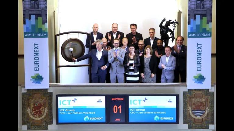 ICT Group (ticker symbol: ICT) opent met een slag op de gong de handel op de Amsterdamse beurs. Zij luiden de gong om de statutaire naamswijziging van ICT Automatisering N.V. naar ICT Group N.V. in te luiden.