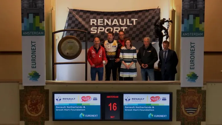 In het kader van 40 jaar Renault cupracen in de Benelux is Renault Nederland een samenwerking gestart met Stichting Groot Hart. Samen luiden zij op de Amsterdamse beurs de gong.