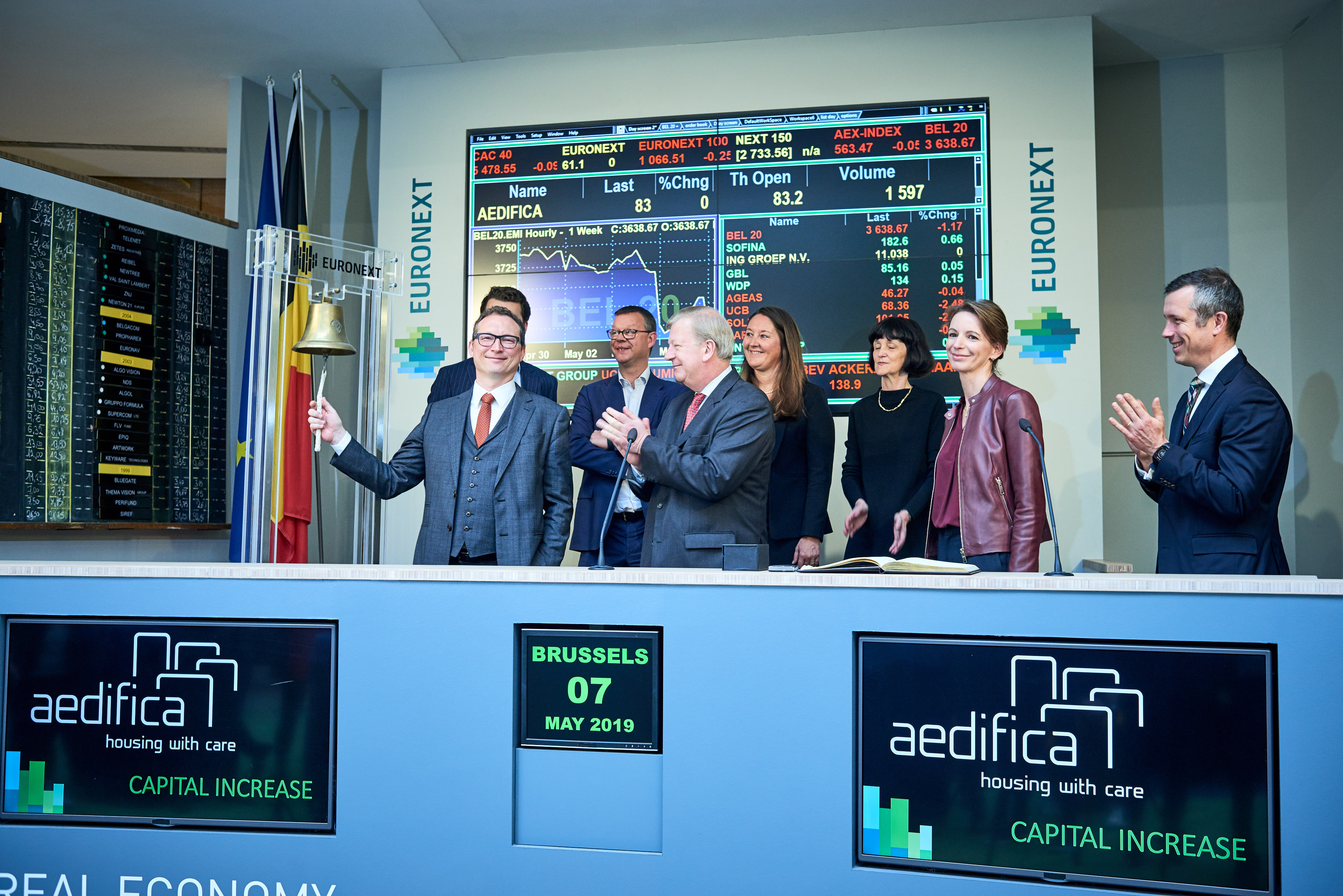 Stefaan Gielens, CEO of Aedifica opened the day of trading during an Opening Bell Ceremony to celebrate Aedifica’s EUR 418m capital increase.