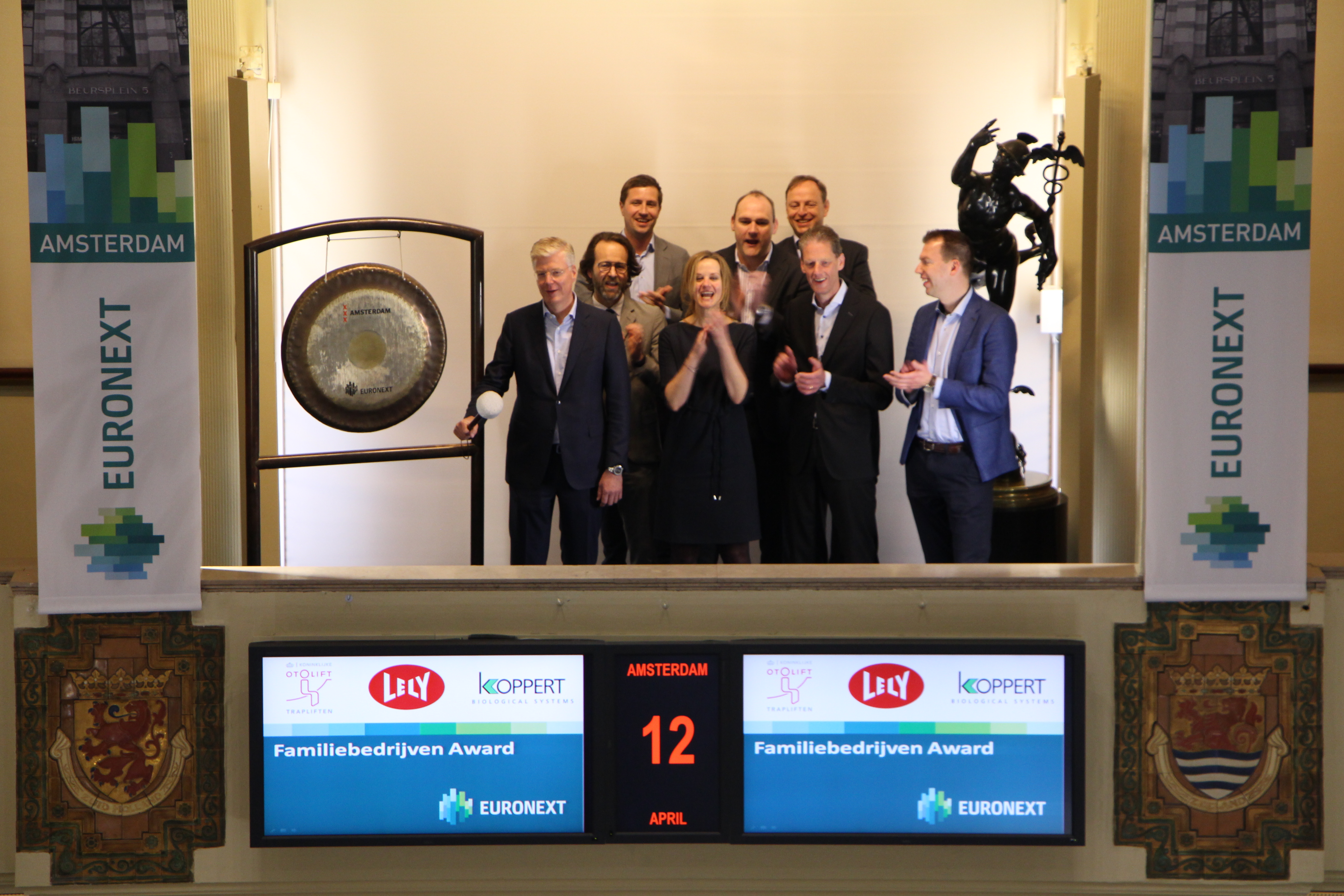Lely won the Family business Award 2019 hosted by Family Enterprises Foundation. Alexander van der Lely, CEO Lely, sounds the gong together with the other finalists Koppert Biolgoical Systems, and Koninklijke Otolift Trapliften.