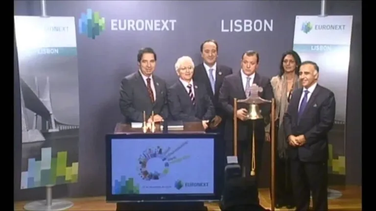 O secretário de Estado Adjunto e da Economia, Leonardo Mathias, juntamente com o presidente da SGE, Luis Barata, e os vice-presidentes, Gonçalo Moreira Rato e Luís Tourais de Matos, tocaram o sino que marcou a abertura da sessão na Bolsa Portuguesa para comemorar o encerramento da Semana Global de Empreendedorismo 2014.