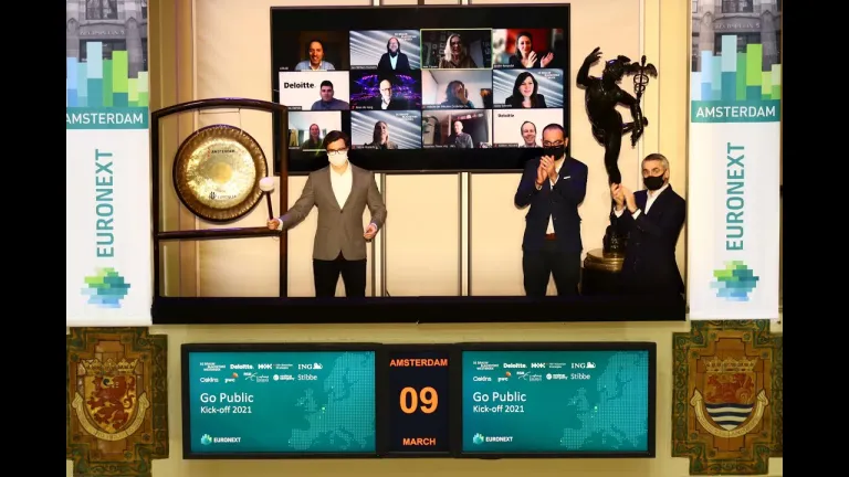 Alexander Voorham, account manager Listings of Euronext Amsterdam, sounded the gong together with cooperation partners as kick-off of the first edition of Go Public the Netherlands 2021. Go Public is the new pre-IPO educational programme of Euronext for entrepreneurs.